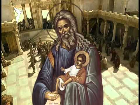 Его перу относят книгу пророка Исаии. Именно после ее прочтения и желания внести некоторые коррективы, так как он думал, что в слове «Дева» была допущена ошибка и ее стоит заменить на «жена», к нему снизошел ангел и предостерег от этого. Он велел, что убедится в правдивости написанного он сможет сам. Однажды, по проведению Святого Духа, он прибыл в Иерусалимский храм. Туда как раз Добрались и Богородица с младенцем.